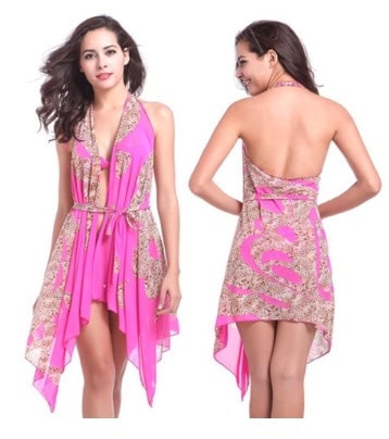 Este vestido convertible viene en color rosa con un estampado color marrón con pinta de leopardo. ¿La única pega? Hay que practicar un poco para ponerselo y poder cambiar su configuración, pero con práctica al final es muy sencillo.
